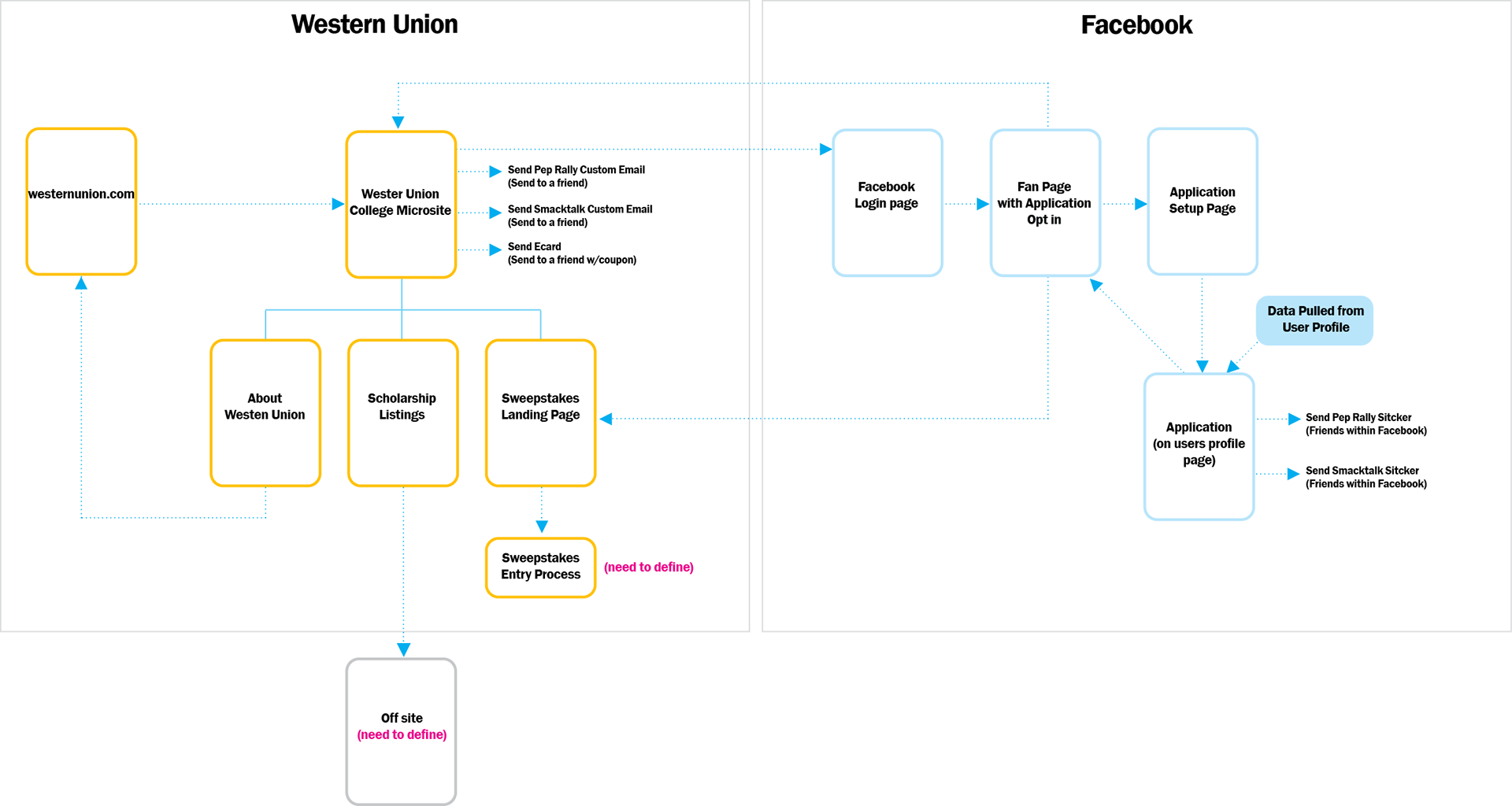 As Associate Creative Director, I guided the concept development, creative direction, and overall tone for the campaign. I also provided UX support, creating user flows and early wireframes that mapped how students would navigate between Facebook apps, games, and Western Union’s core services.